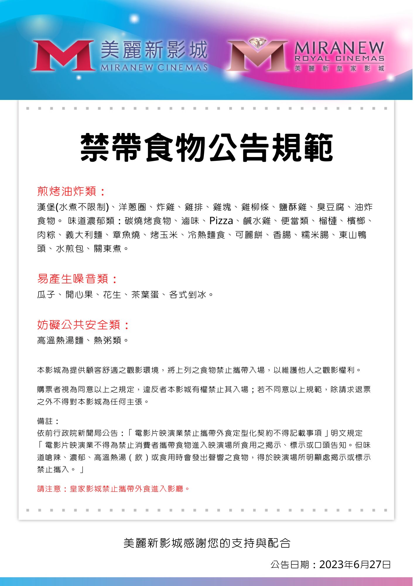 禁帶食物公告規範